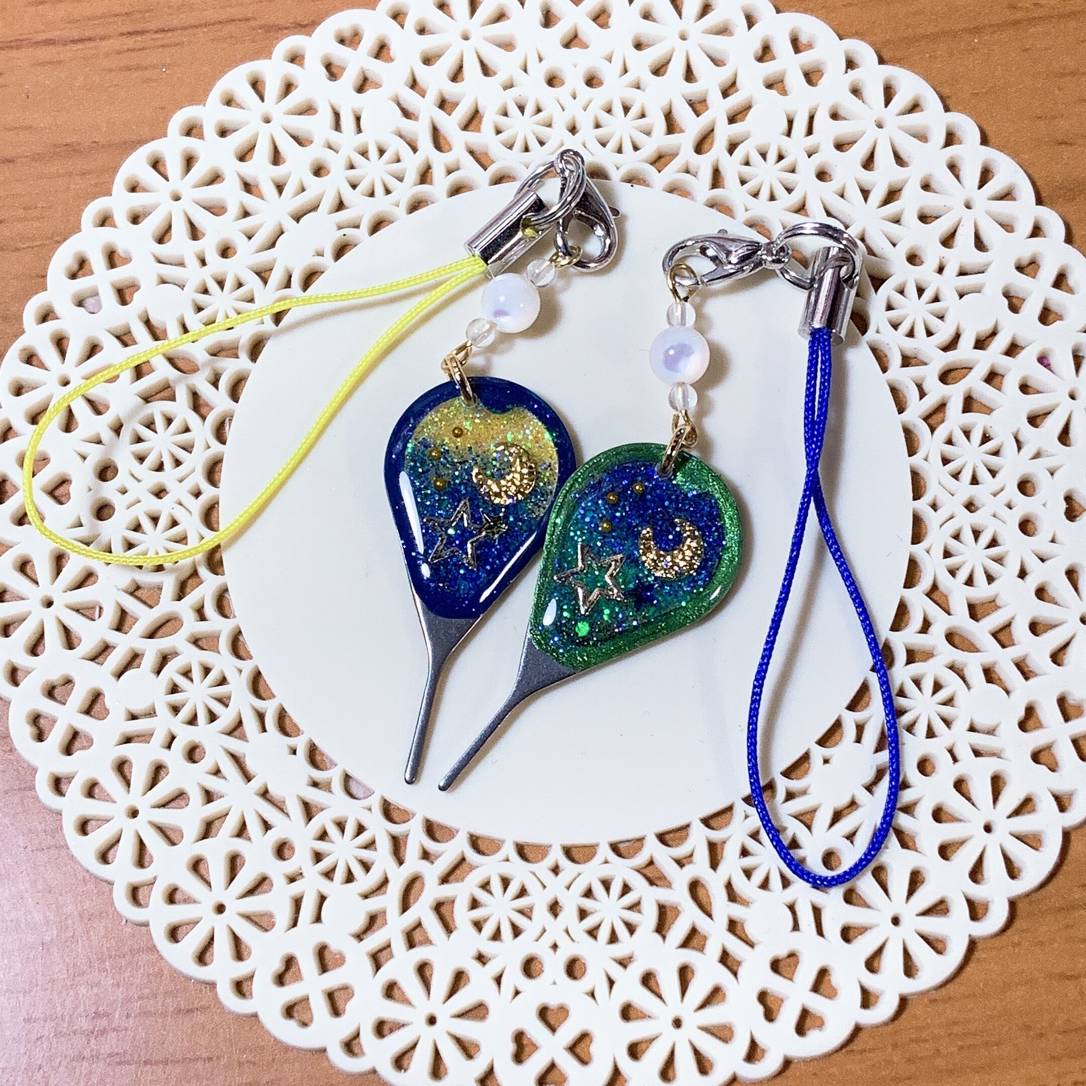 元々はただのシルバーの無機質なピンを素敵なストラップアクセサリーに変身させました*