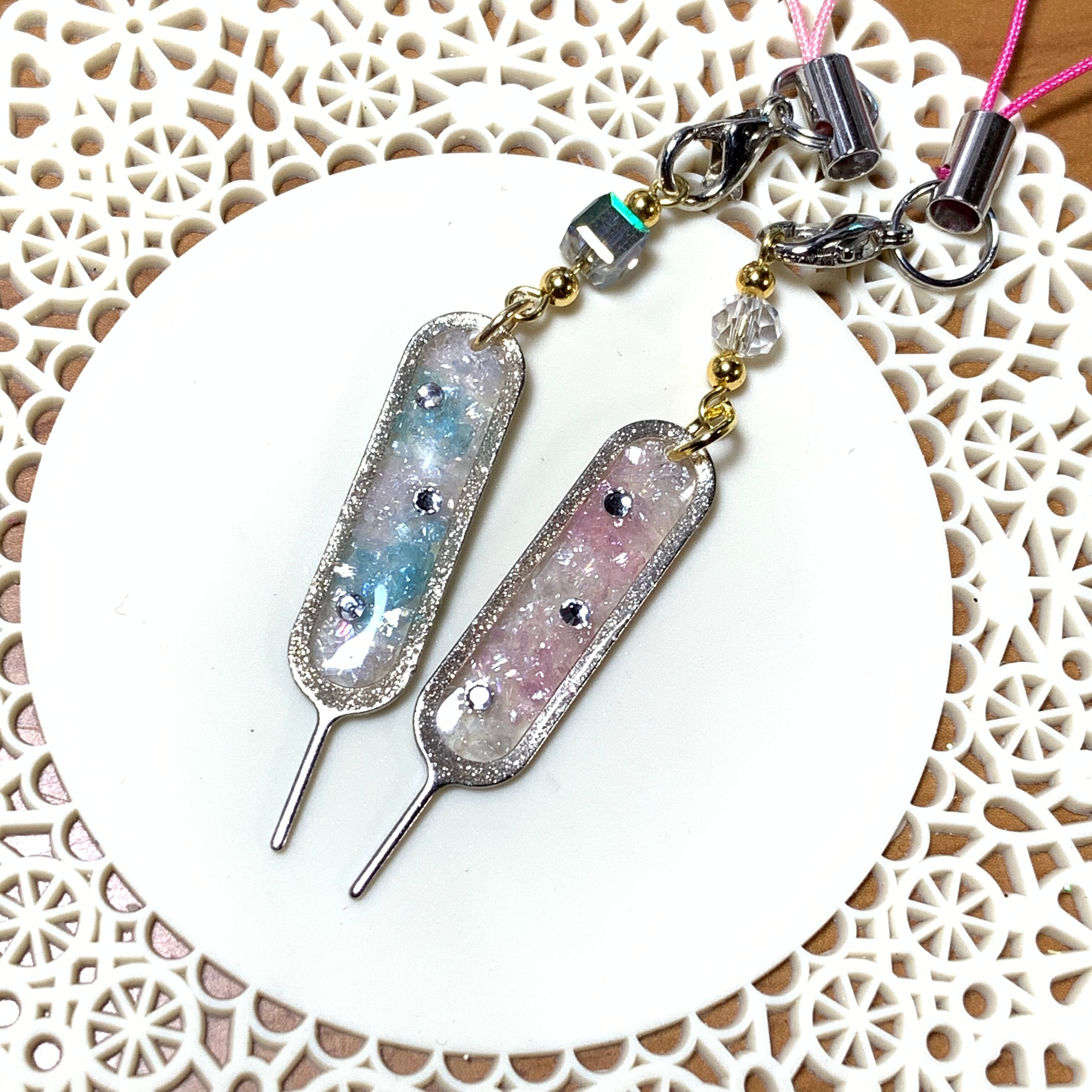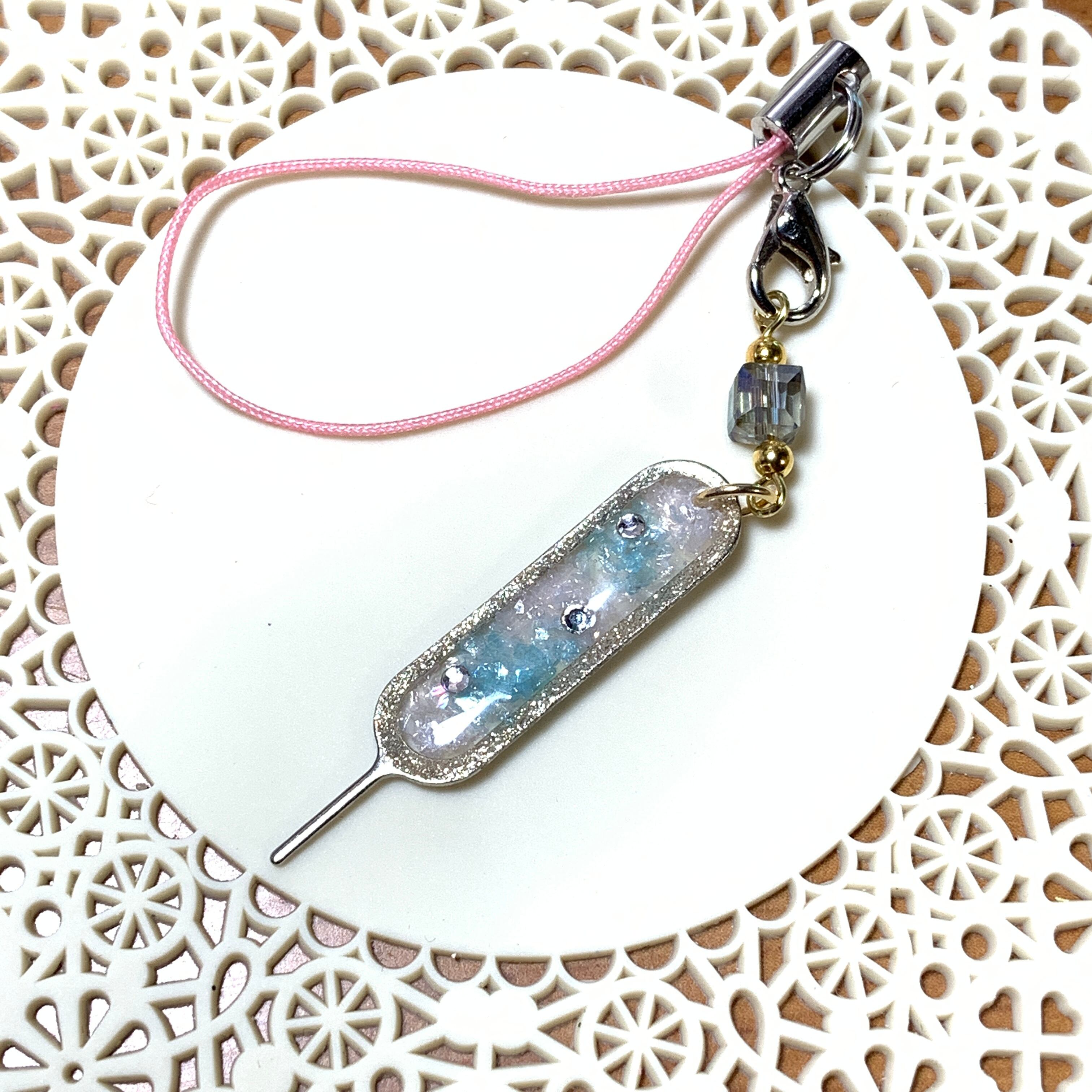 元々はただのシルバーの無機質なピンが、色を入れることにより素敵なストラップアクセサリーに変身。