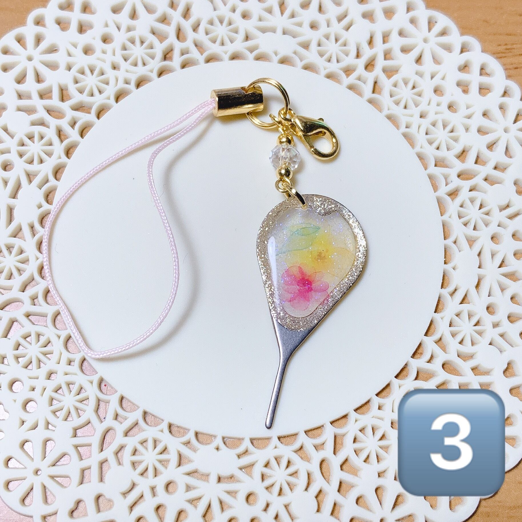 元々はただのシルバーの無機質なピンが、色を入れることにより素敵なストラップアクセサリーに変身。