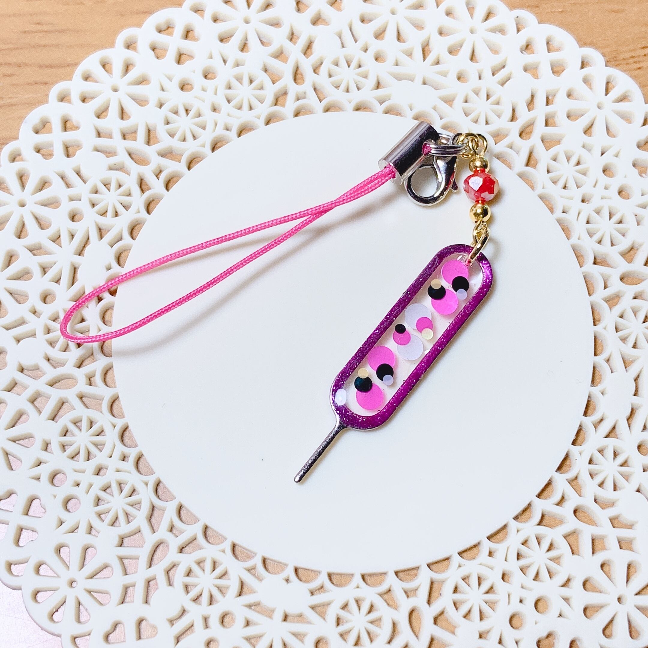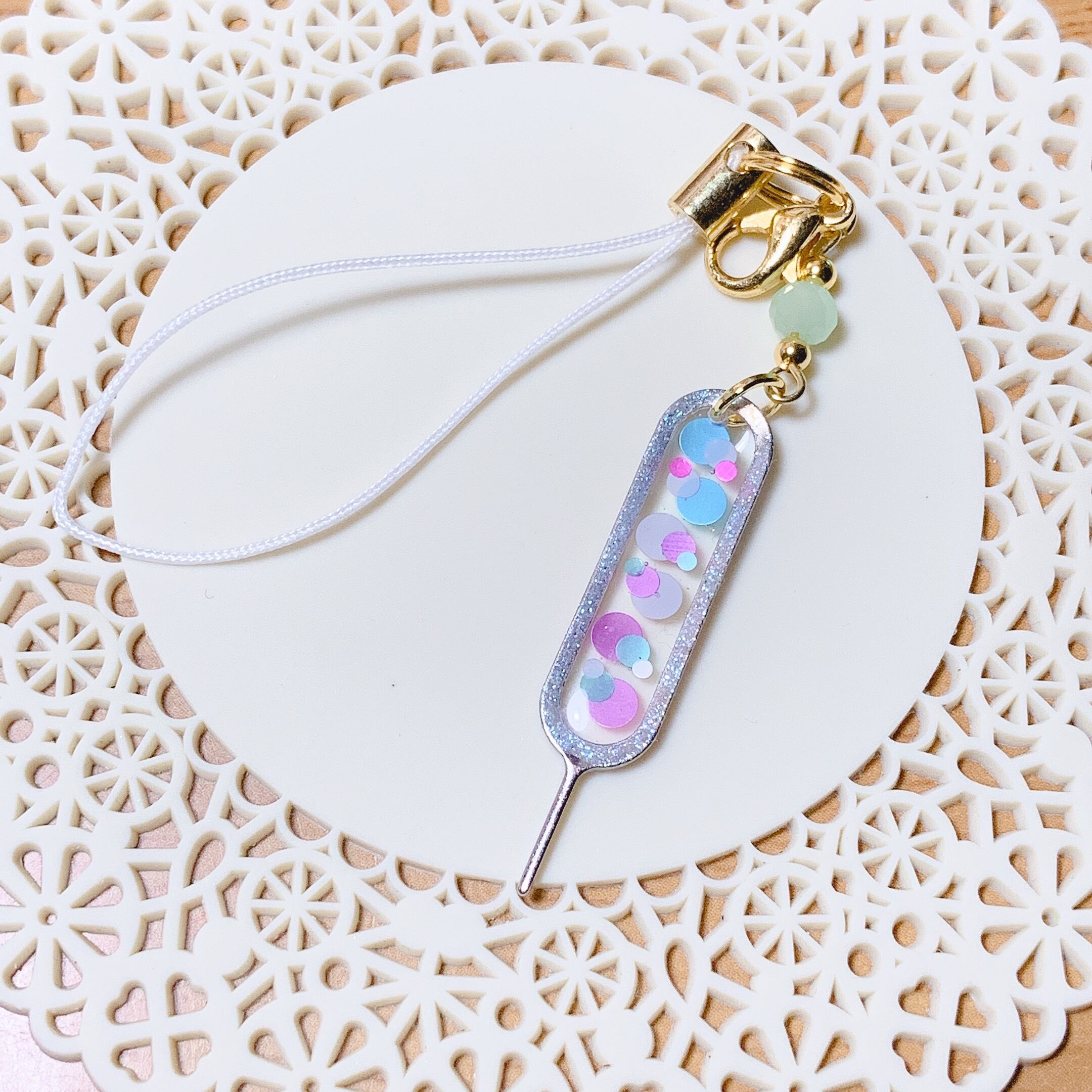 元々はただのシルバーの無機質なピンが、色を入れることにより素敵なストラップアクセサリーに変身。
