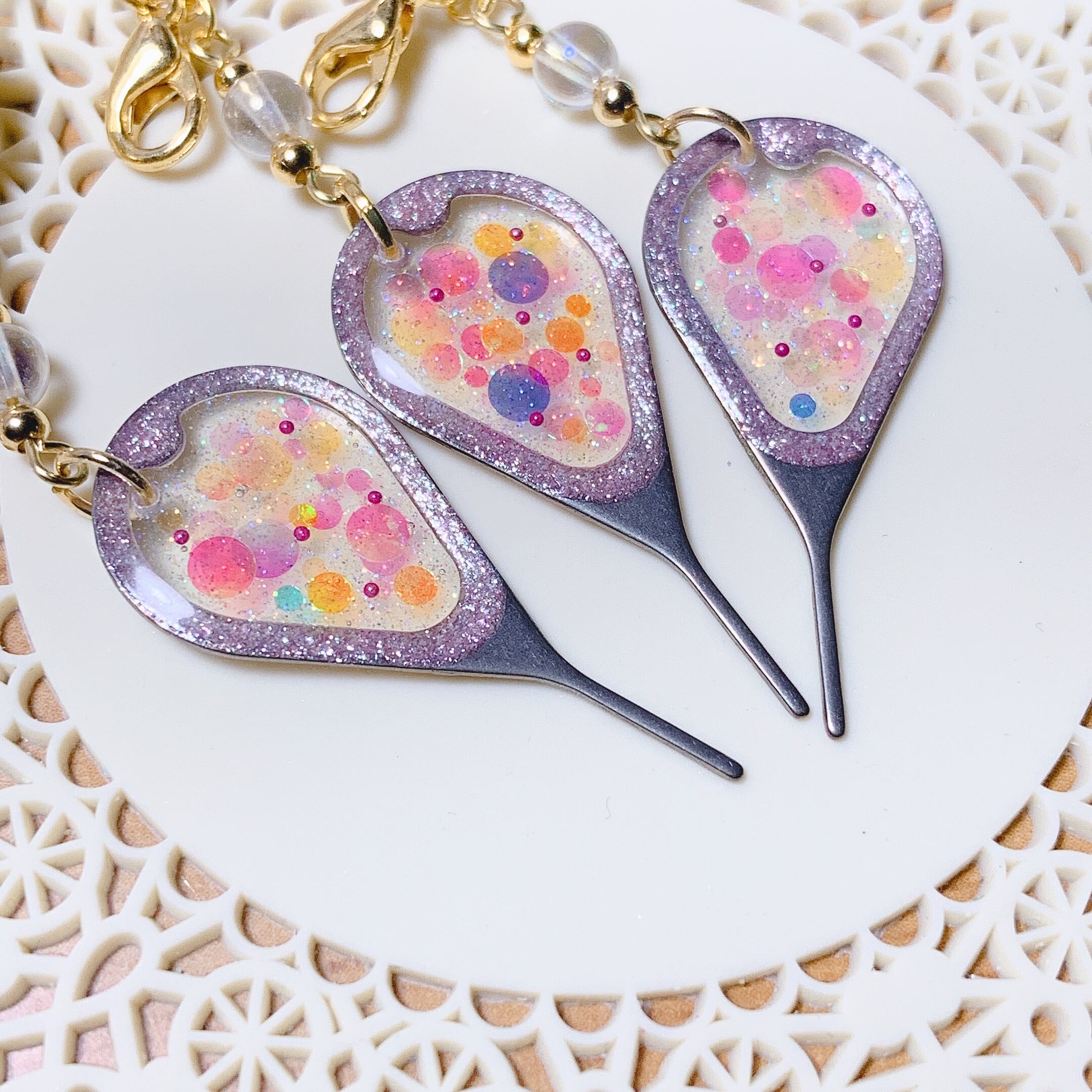 元々はただのシルバーの無機質なピンを素敵なストラップアクセサリーに変身させました❣️