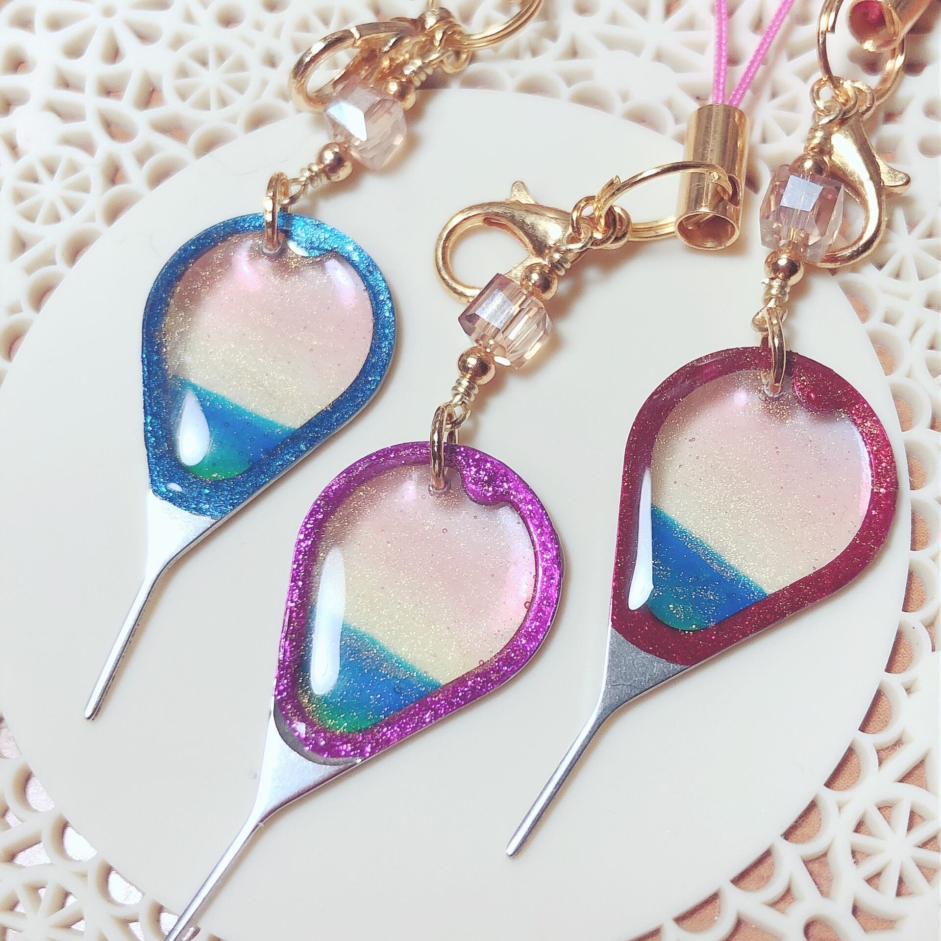 元々はただのシルバーの無機質なピンが、色を入れることにより素敵なストラップアクセサリーに変身。