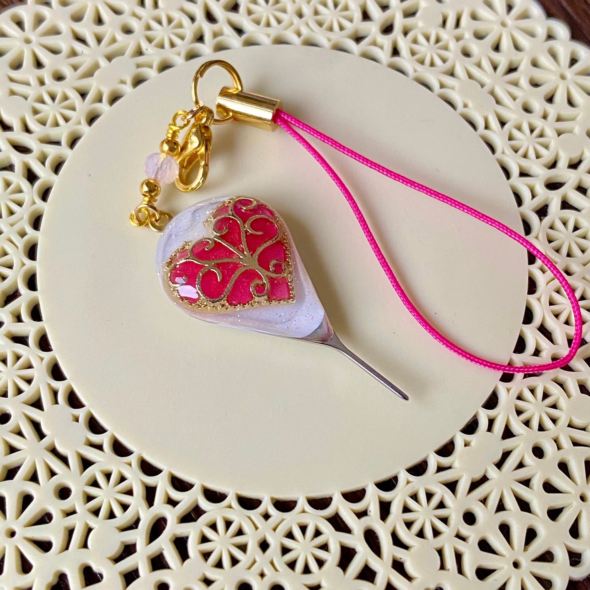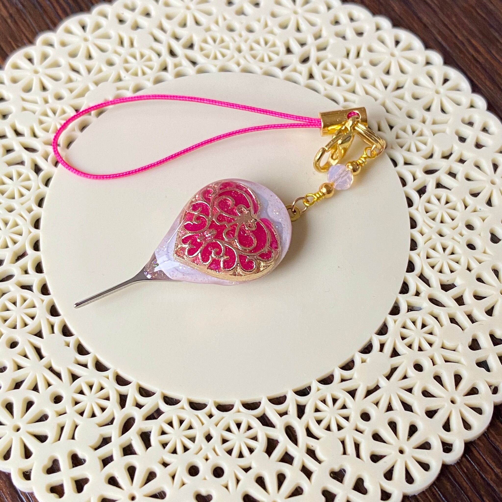 元々はただのシルバーの無機質なピンが、色を入れることにより素敵なストラップアクセサリーに変身。